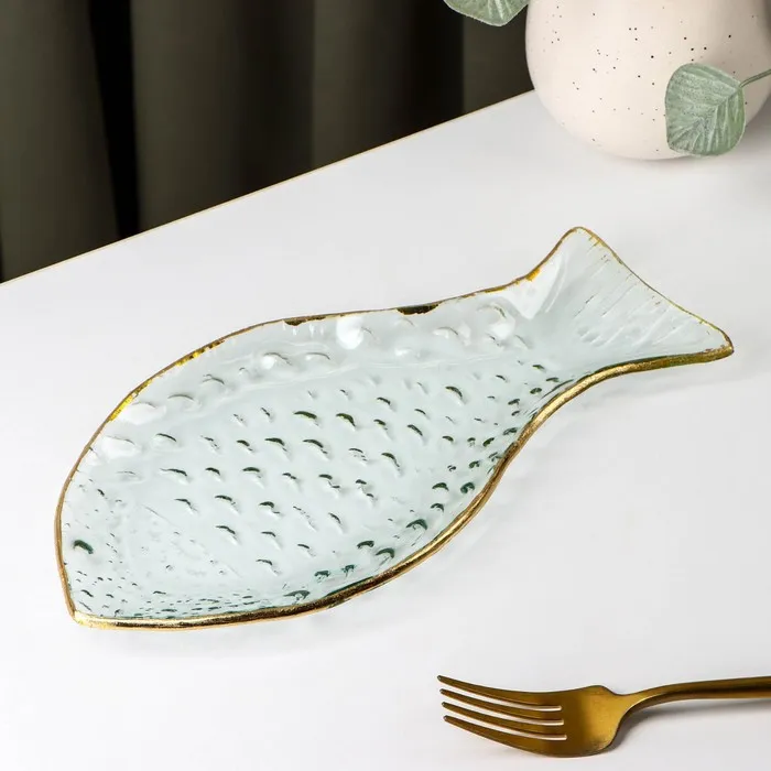 Блюдо стеклянное сервировочное «Рыбка», 13×24 см, с золотой каймой — Характеристики