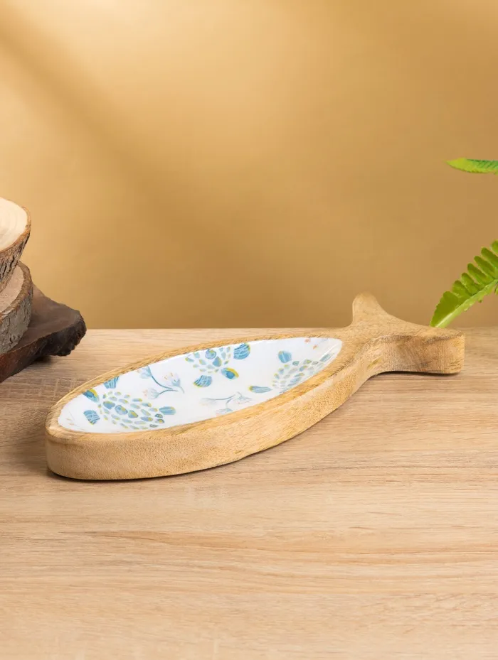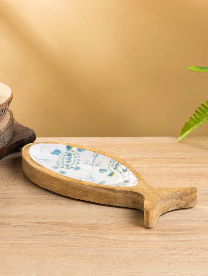 Блюдо в форме рыбки «Черепаха и цветы», 25.5×10×2 см, дерево манго — Характеристики