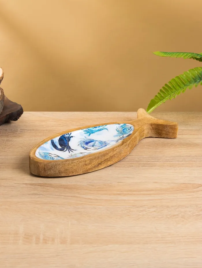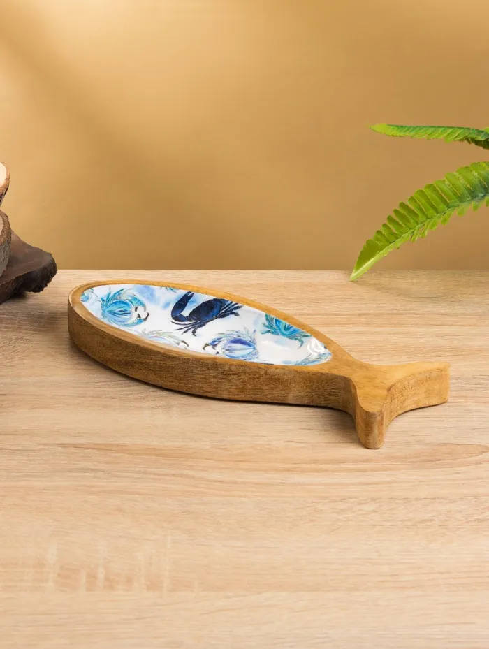 Блюдо в форме рыбки «Крабы», 25.5×10×2 см, дерево манго — Характеристики