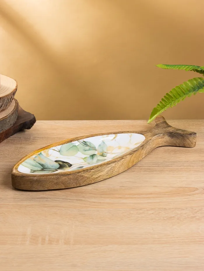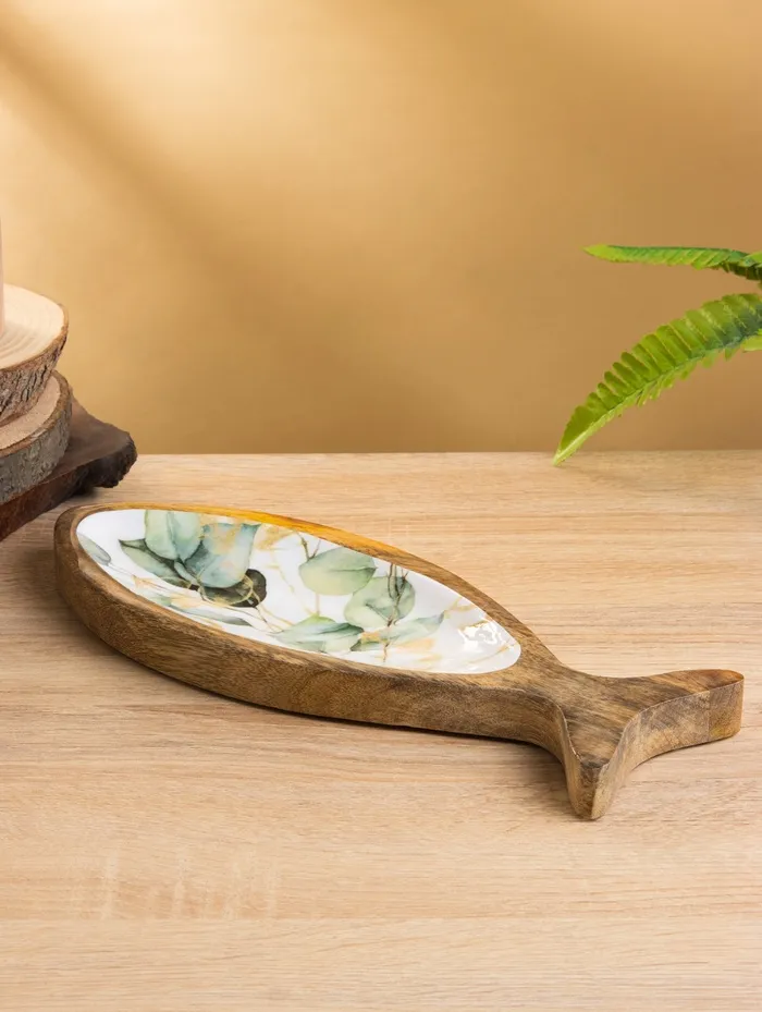 Блюдо в форме рыбки «Листья», 32×11.5×2 см, дерево манго — Характеристики