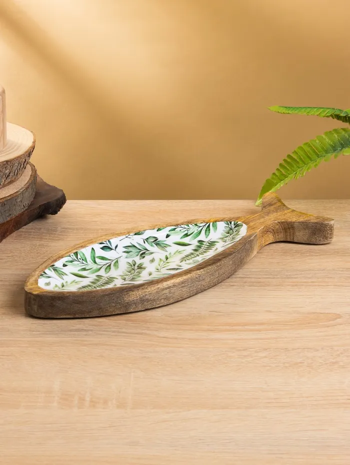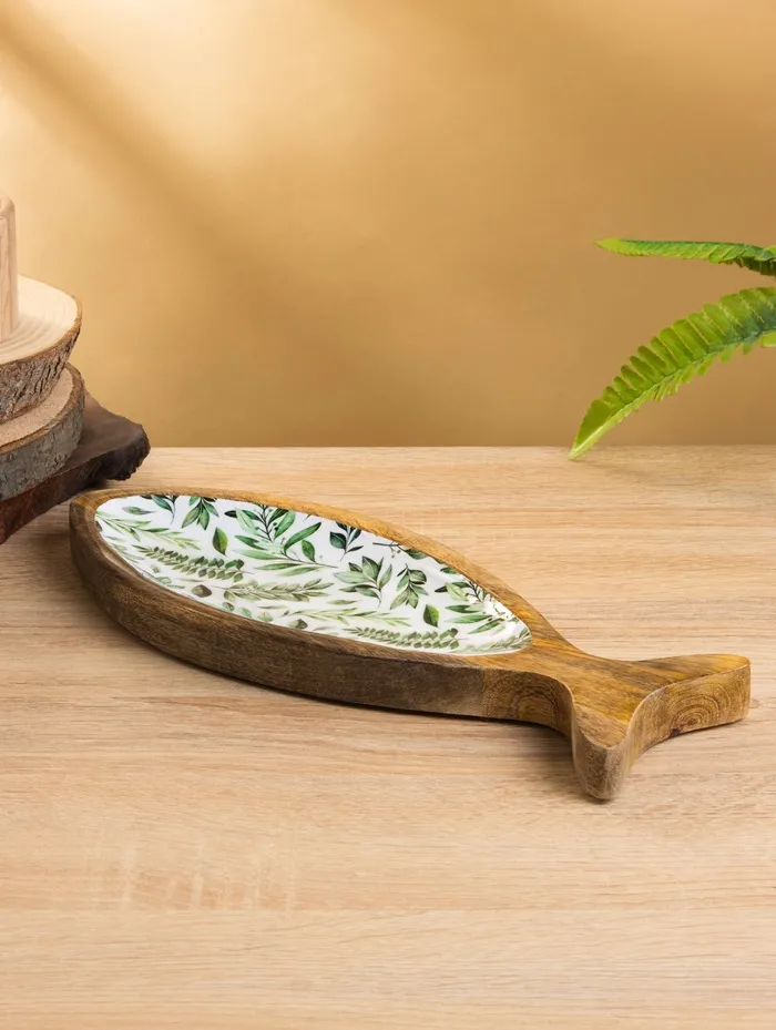 Блюдо в форме рыбки «Оливковая ветвь», 32×11.5×2 см, дерево манго — Характеристики