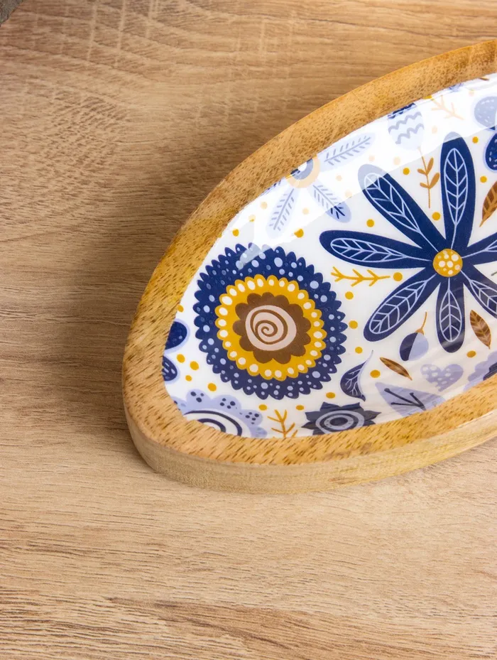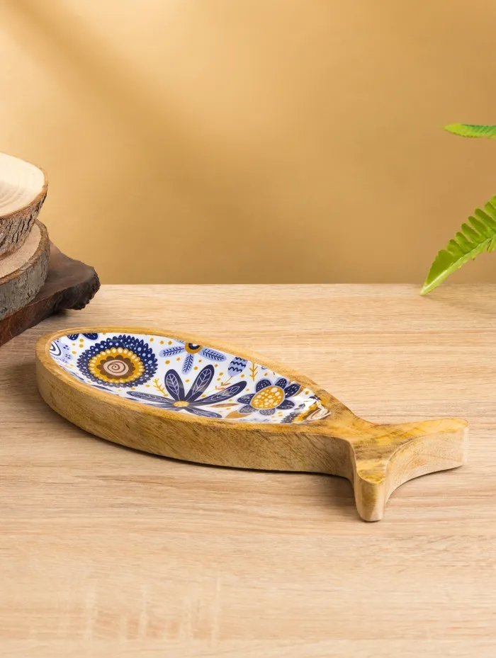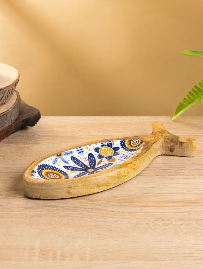 Блюдо в форме рыбки «Васильки», 25.5×10×2 см, дерево манго — Характеристики