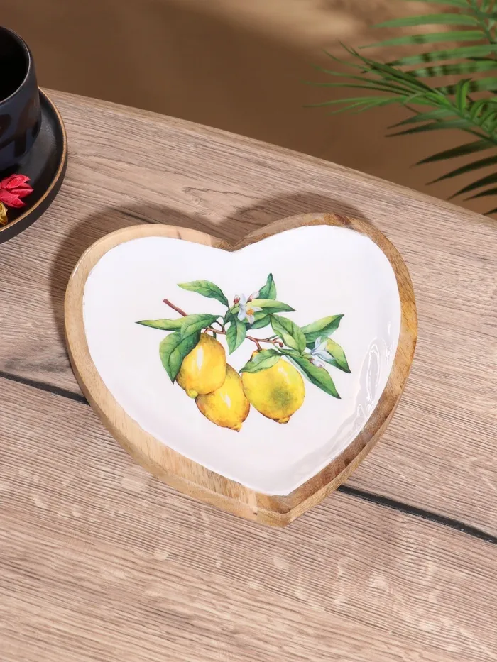 Блюдо в форме сердца «Лимоны», 20.5×20×2.3 см, дерево манго — Характеристики