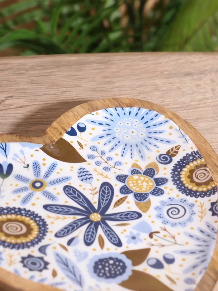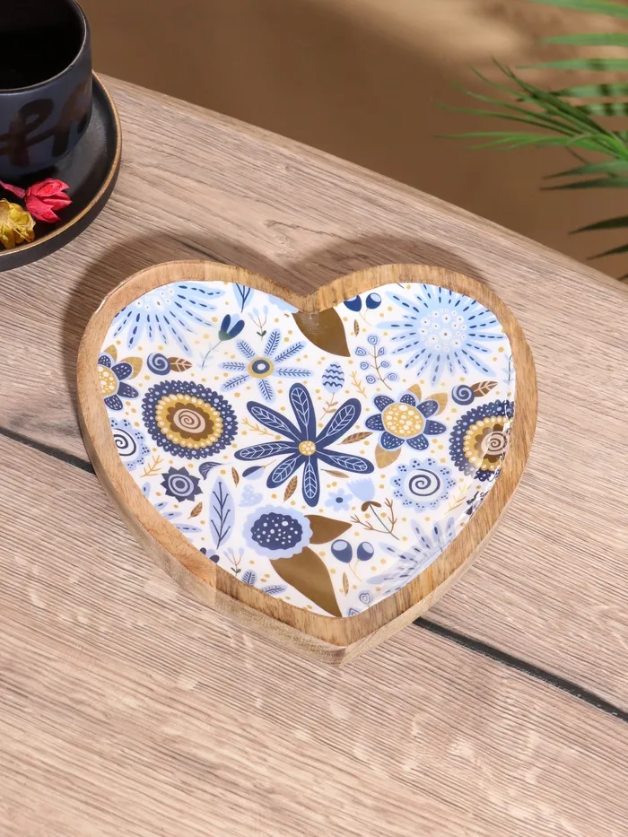 Блюдо в форме сердца «Васильки», 20.5×20×2.3 см, дерево манго — Характеристики
