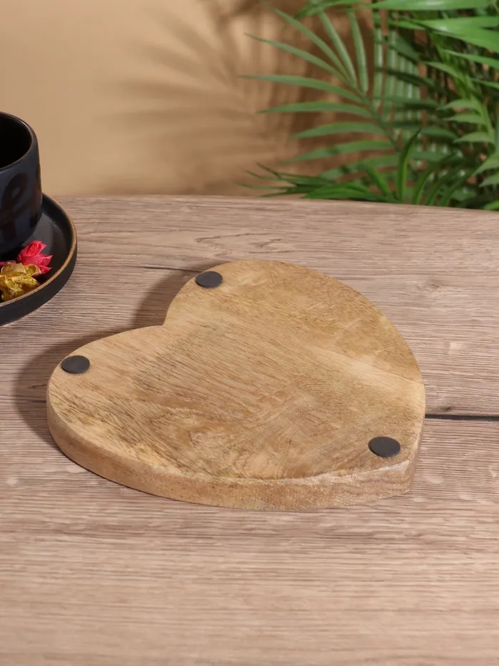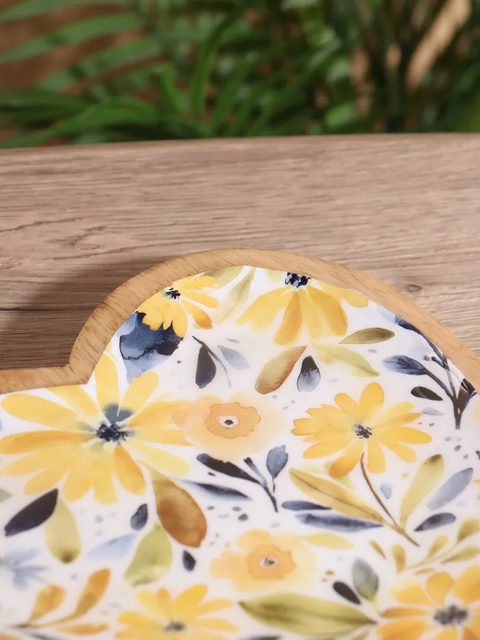 Блюдо в форме сердца «Желтые и синие цветы», 20.5×20×2.3 см, дерево манго — Характеристики