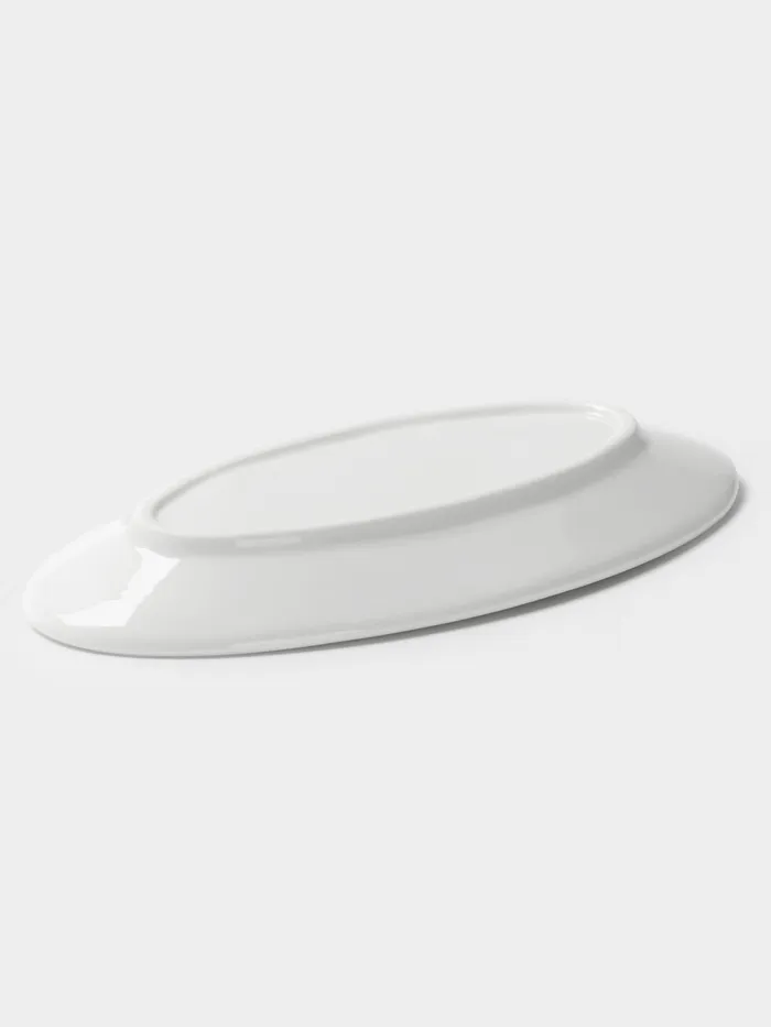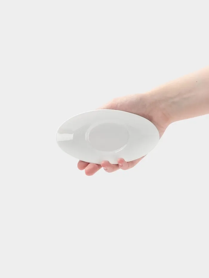 Овальное блюдце из белого фарфора — продуманное решение для подачи соусника объёмом 100 мл. Его гладкая поверхность и лаконичная форма подчёркивают утончённость и практичность, создавая идеальный баланс между эстетикой и функциональностью.