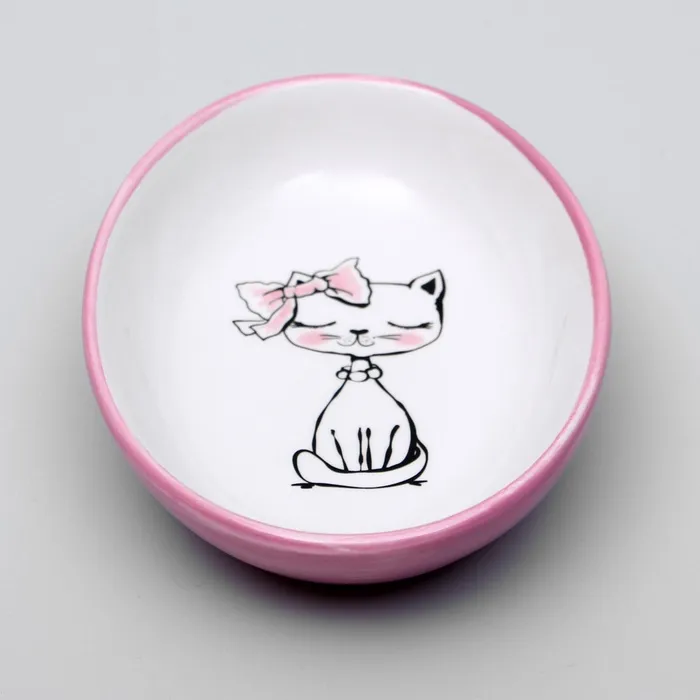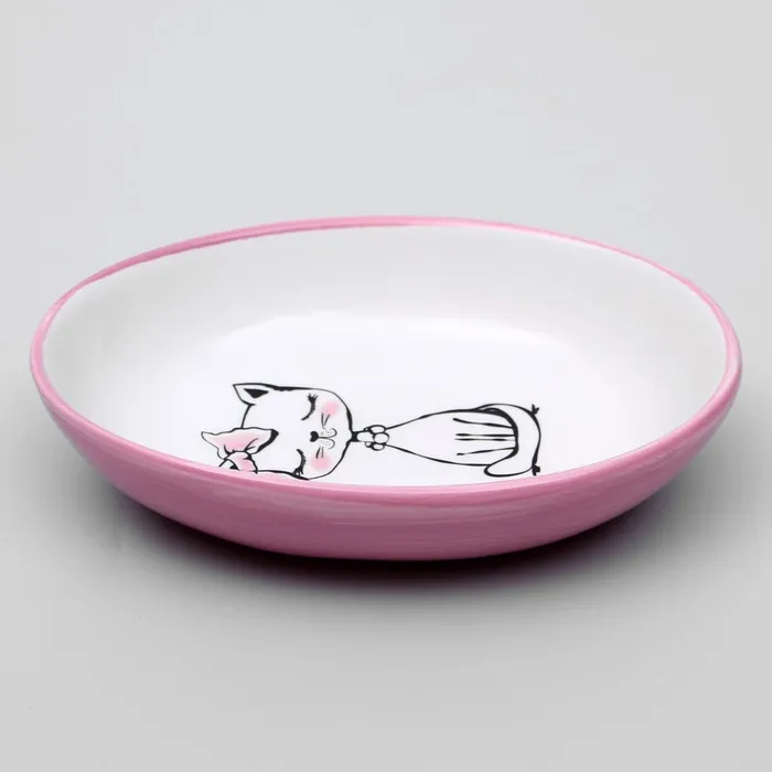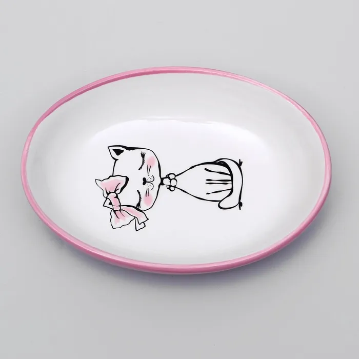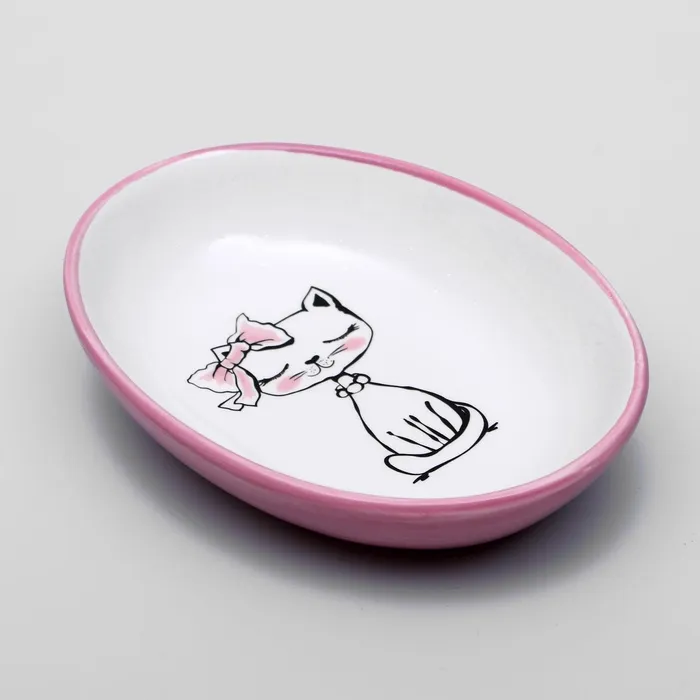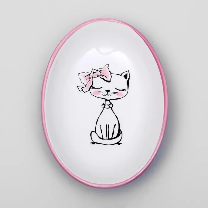 Блюдце керамическое "Милая киса" 200 мл 15,7 х 11,3 х 3,8 см, розовая/белая — Характеристики