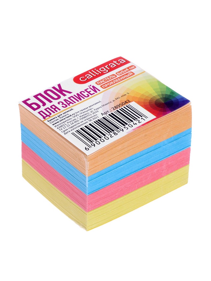 Блок бумаги для записей Calligrata, на склейке, 6×5×4 см, 80 г/м², цветной, пастель — Характеристики