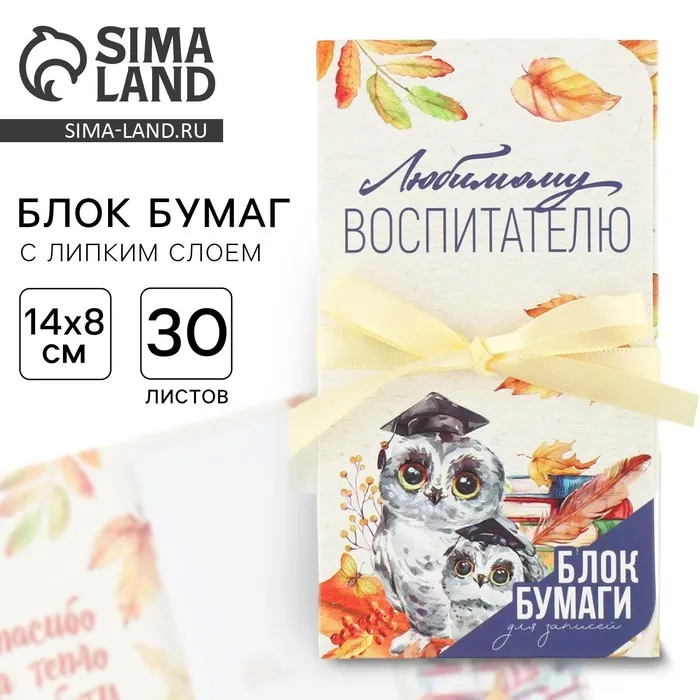 Блок бумаги для записей с липким слоем «Любимому воспитателю» в открытке с лентой, 30 листов — Характеристики
