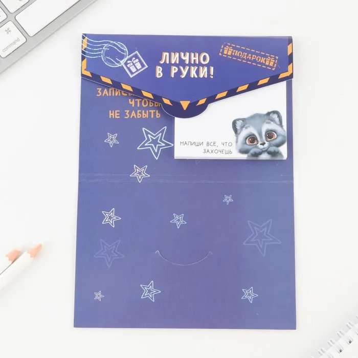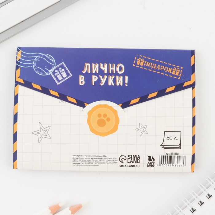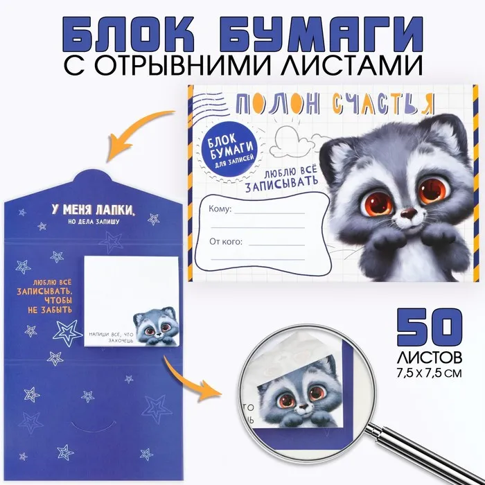 Блок бумаги с отрывными листами в конверте, 50 л «Енот» — Характеристики
