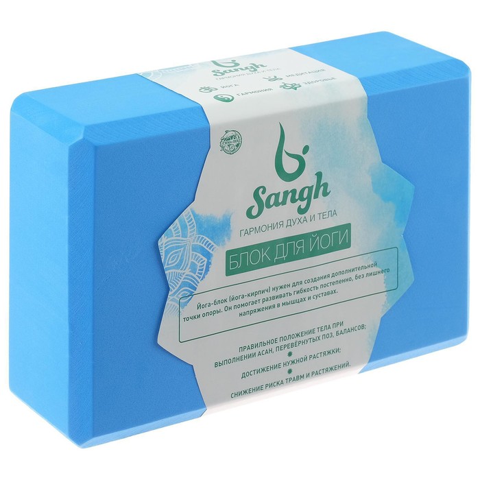 Блок для йоги Sangh, 23х15х8 см, цвет синий