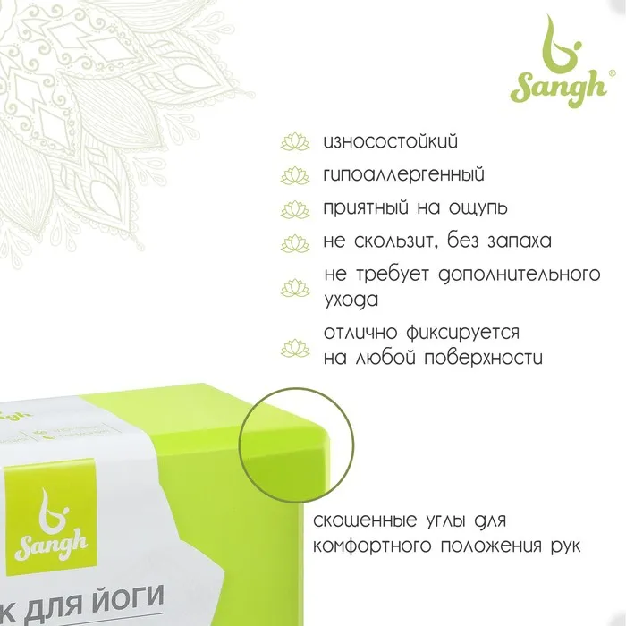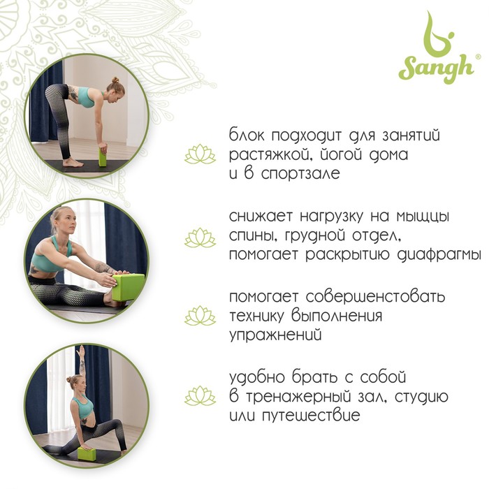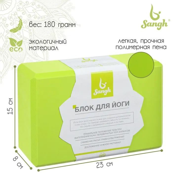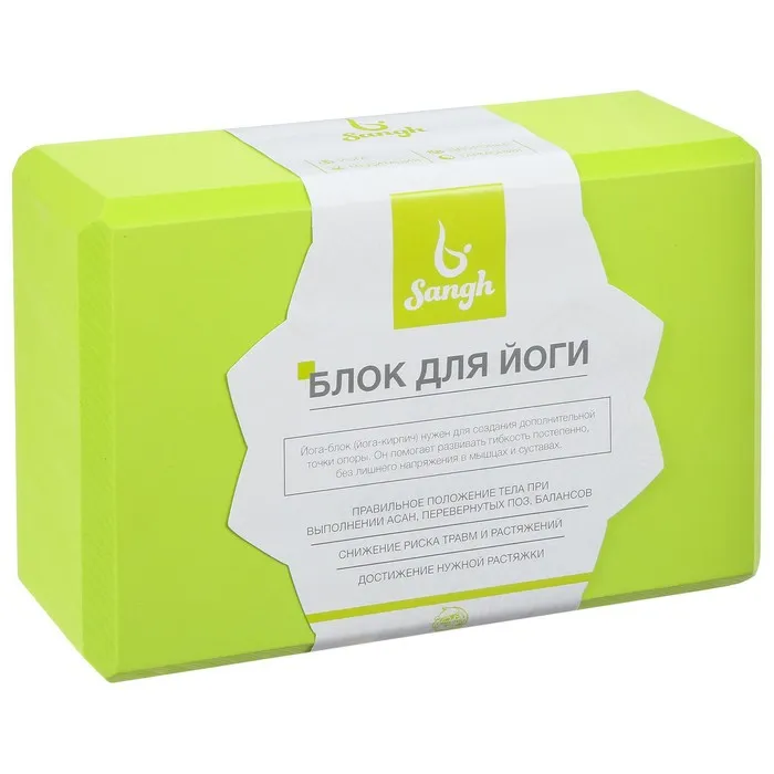 Блок для йоги Sangh, 23х15х8 см, цвет зелёный