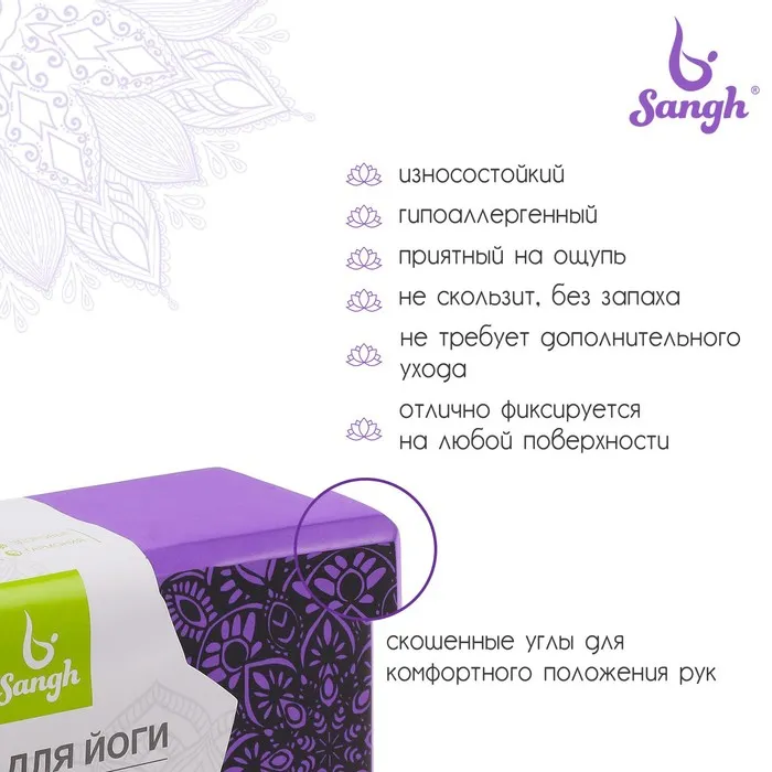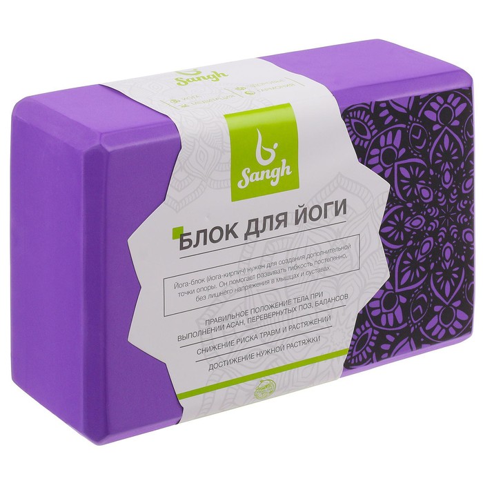 Блок для йоги Sangh, 23×15×8 см, цвет фиолетовый