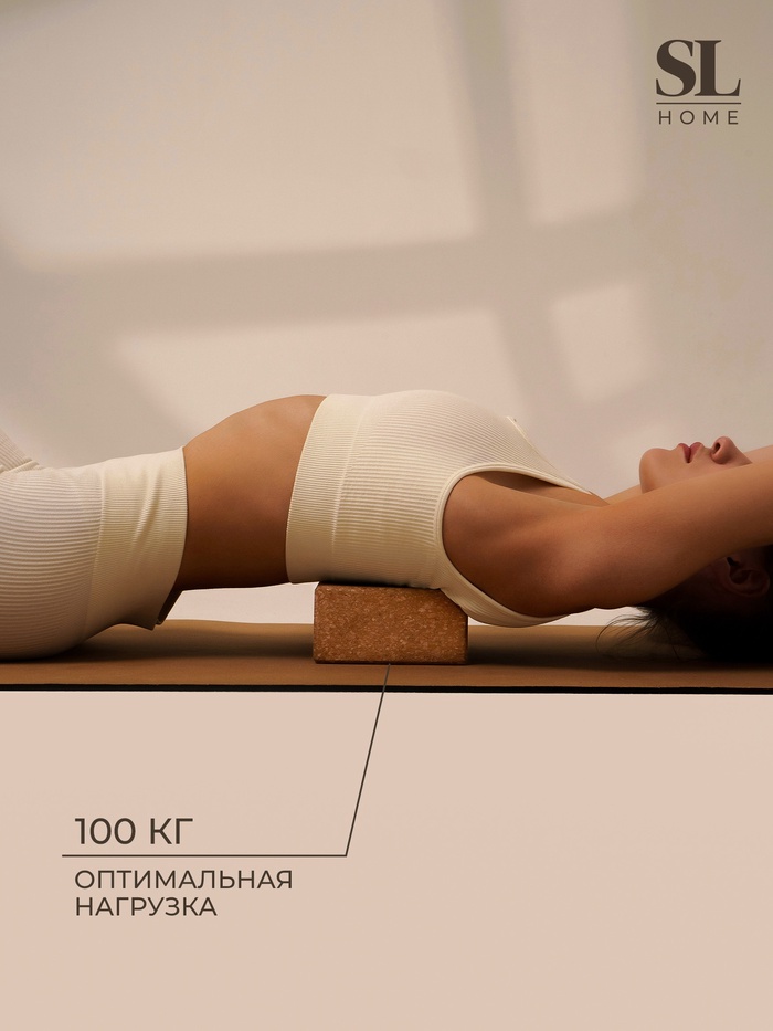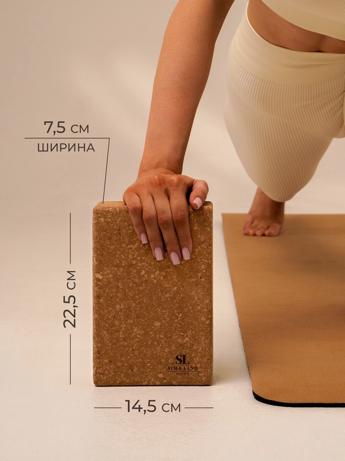 Блок для йоги Sima-Land Home, 22.5×14.5×7.5 см, пробка — Характеристики