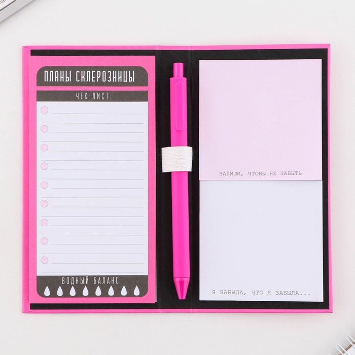 Блок для записей 3 шт. по 30 листов, стикеры, ручка шариковая синяя паста 0.7 мм «Набор склерозницы» — Характеристики