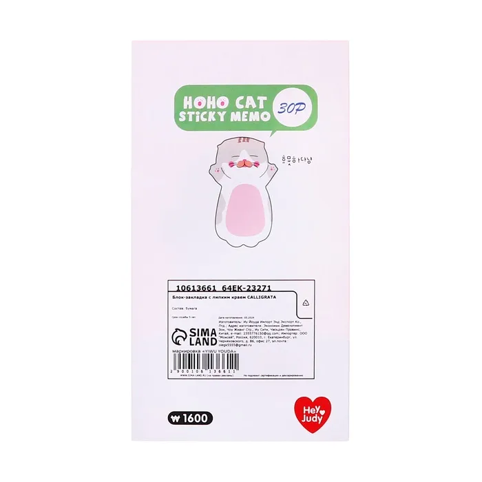 Блок для записей 35мм х 70мм 30л Бело - розовый котик — Характеристики