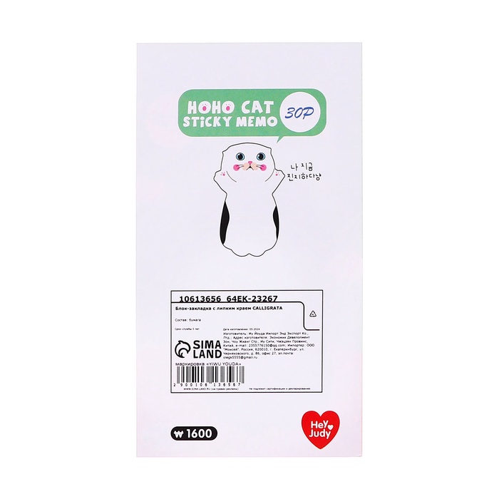 Блок для записей 35мм х 70мм 30л Белый котик — Характеристики