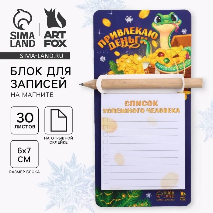 Блок для записей с карандашом на магните, 30 листов «Новый год: Привлекаю деньги! Символ года» — Характеристики