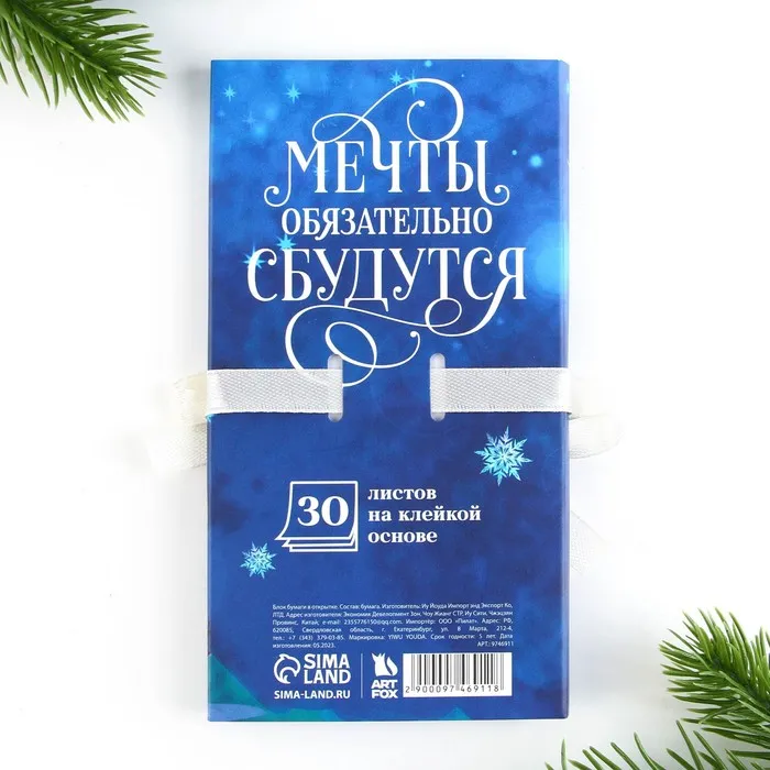 Блок для записей с липким слоем, 30 листов «Новый год: Мечты обязательно сбудутся» — Характеристики
