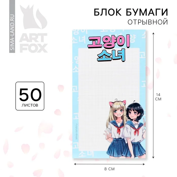 Блок для записей с отрывными листами 140 х 80 мм, 50 л. «Аниме школьницы» — Характеристики