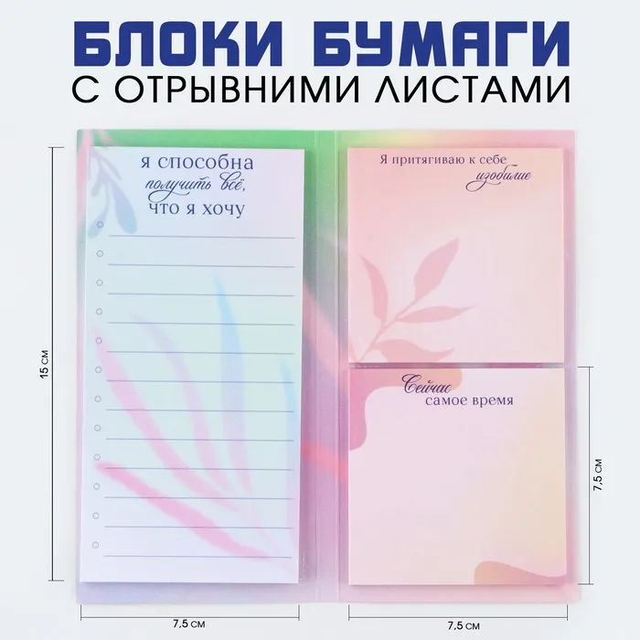 Блок для записей с отрывными листами, 3 блока по 30 листов «Любовь к себе» — Характеристики