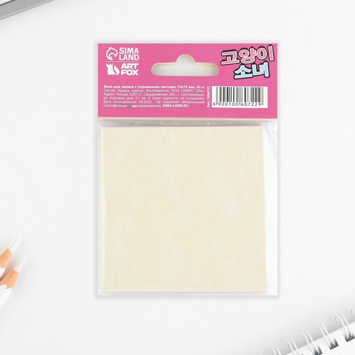 Блок для записей с отрывными листами, 50 л. 7,5 х 7,5 см «Аниме. Девочка кошка» — Характеристики