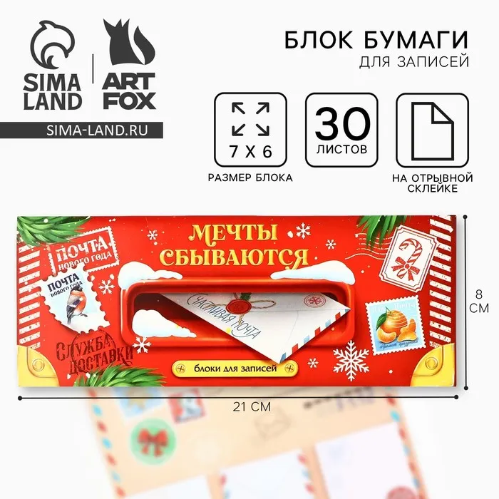 Блок для записей с отрывными листами, в открытке, 30 л. «Новый год: Сказочная почта» — Характеристики