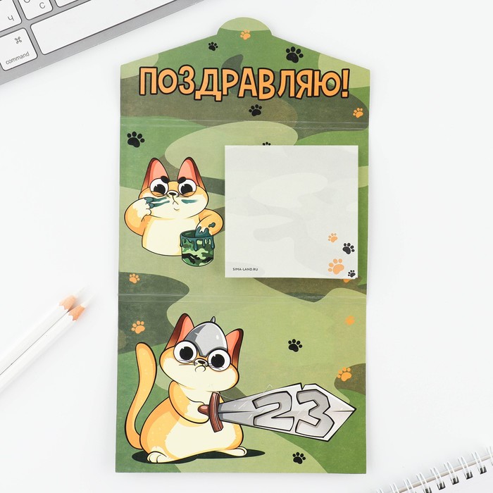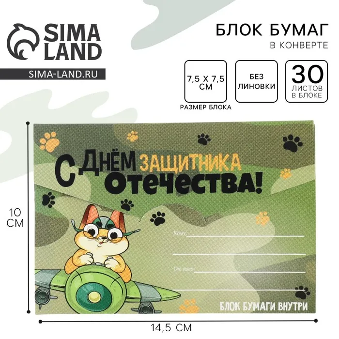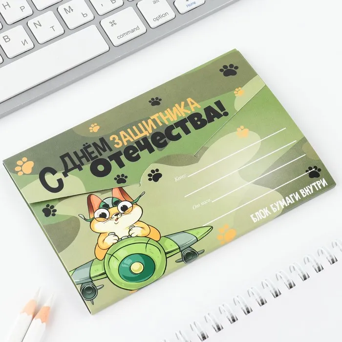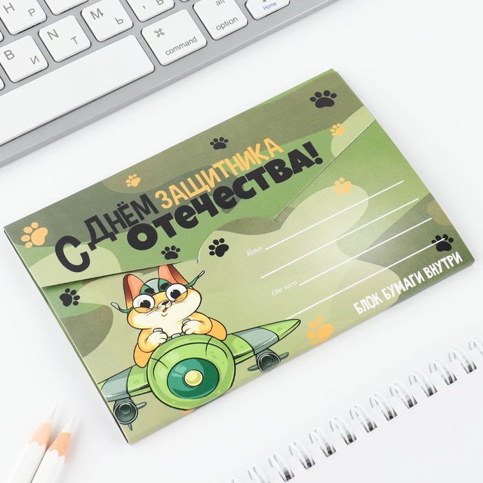 Блок для записей с отрывными листами, в открытке, 30 листов «23 февраля: С днем защитника отечества» — Характеристики