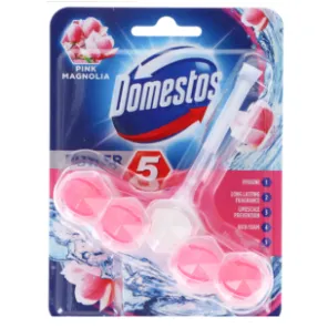 Блок для очищения унитаза Domestos Power 5 Pink Magnolia - пять действий, которые объединились в одном эффективном средстве для поддержания чистоты, блеска и приятного аромата в вашем туалете. Domestos Power 5 - это эффективное средство, которое содержит в себе не один, а целых пять преимуществ, обеспечивающих защиту от загрязнений, а значит и микробов. При использовании блоков Domestos Power 5 каждое смывание - заряд свежего аромата магнолии, который остается в течение длительного времени - до 4х часов. Больше никакого налета на внутренней поверхности унитаза - блок Domestos Power 5 успешно справляется с данной задачей. Смывание за смыванием блок оставляет обильную пену и аромат магнолии, борется с налетом, поддерживает чистоту, оставляя поверхность унитаза блестящей.