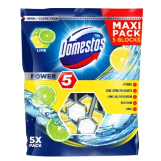 Блок для очищения унитаза Domestos Power 5 lime 5шт. в упаковке - это эффективное средство с целыми пятью силами против загрязнений и микробов! При использовании блоков Domestos Power 5 каждое смывание - заряд свежего аромата, который остается до 4х часов. Никакого налета на внутренней поверхности унитаза - Domestos Power 5 успешно с ним справится! Смывание за смыванием блок оставляет обильную пену и аромат лайма, борется с налетом, делает поверхность чистой и блестящей.Domestos Power 5 lime - на защите чистоты, гигиены и здоровья вашей семьи. Для достижения максимального эффекта поместите продукт в место наиболее сильного потока воды при смыве. Domestos Сила 5 работает до 1,5 раз дольше (по результатам тестов Unilever по сравнению с другой продукцией Unilever).