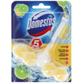 Блок для очищения унитаза Domestos Power 5 lime - это эффективное средство с целыми пятью силами против загрязнений и микробов! При использовании блоков Domestos Power 5 каждое смывание - заряд свежего аромата, который остается до 4х часов. Никакого налета на внутренней поверхности унитаза - Domestos Power 5 успешно с ним справится! Смывание за смыванием блок оставляет обильную пену и аромат лайма, борется с налетом, делает поверхность чистой и блестящей.Domestos Power 5 lime - на защите чистоты, гигиены и здоровья вашей семьи. Для достижения максимального эффекта поместите продукт в место наиболее сильного потока воды при смыве. Domestos Сила 5 работает до 1,5 раз дольше (по результатам тестов Unilever по сравнению с другой продукцией Unilever).