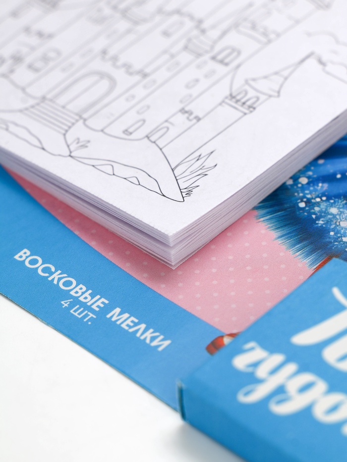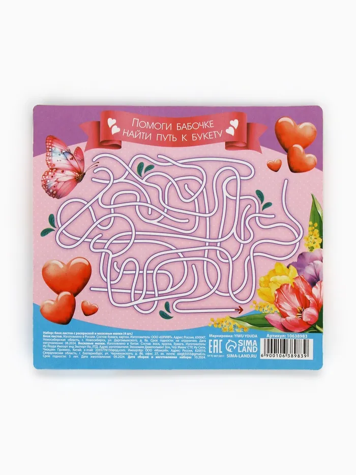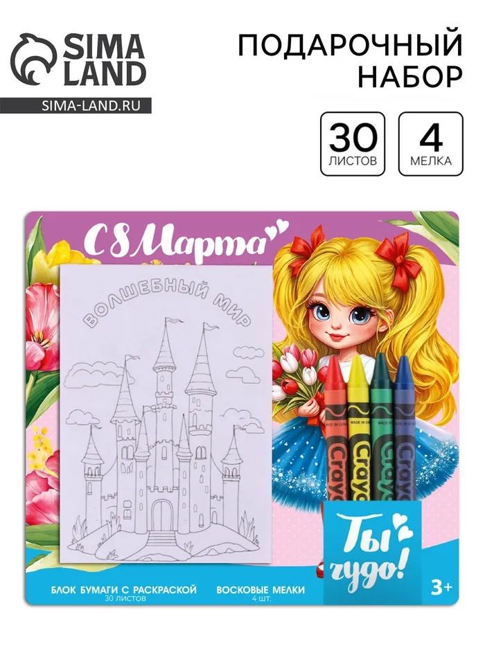 Блок листов с раскраской и восковые мелки «С 8 марта» — Характеристики