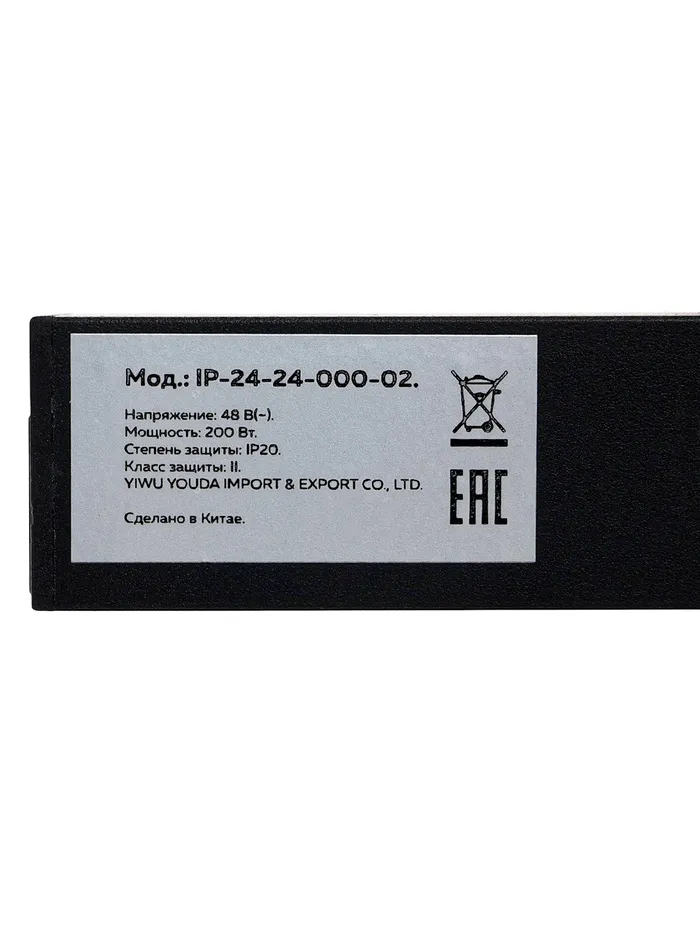 Блок питания для магнитной трековой системы, серия "Broad", 200 Вт, 48В, 2.1А, черный — Характеристики
