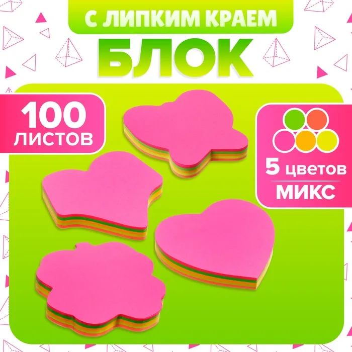Блок с липким краем 100 листов, 5 цветов флуор Фигурки МИКС — Характеристики