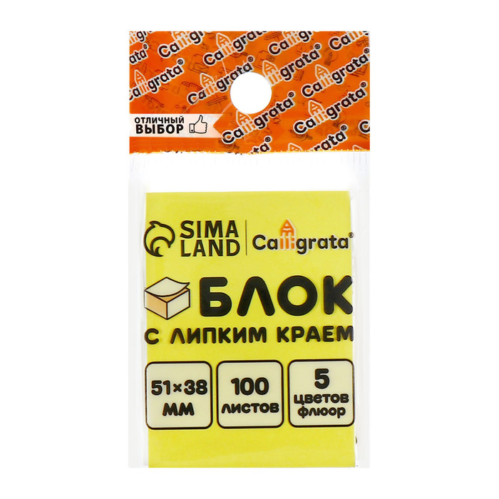 Блок с липким краем, 100 листов, 5 цветов, флуоресцентный — Характеристики