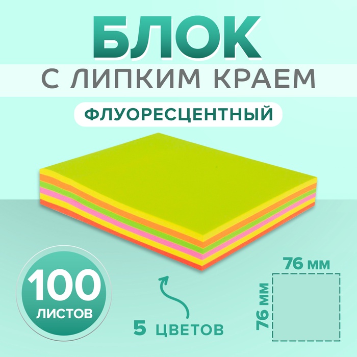 Блок с липким краем, 100 листов, флуоресцентный, 5 цветов, МИКС — Характеристики