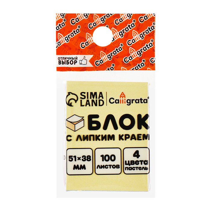 Блок с липким краем, 51×38 мм, 100 листов, 4 цвета, пастель — Характеристики