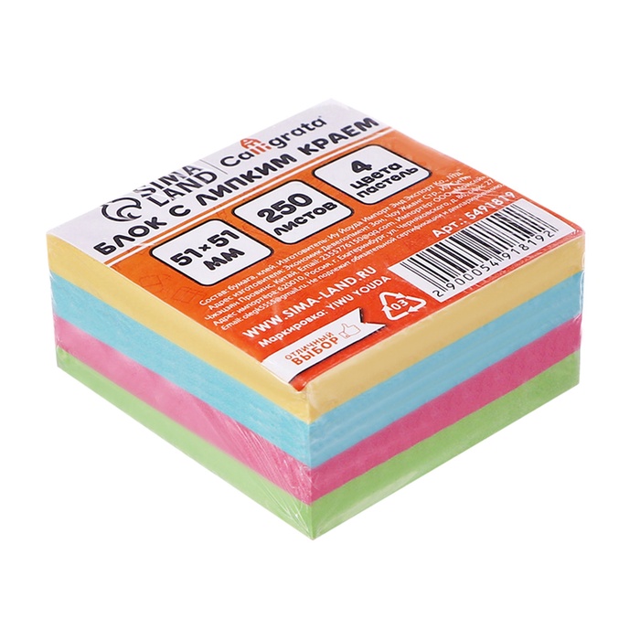 Блок с липким краем, 51×51 мм, 250 листов, пастель, 4 цвета — Характеристики