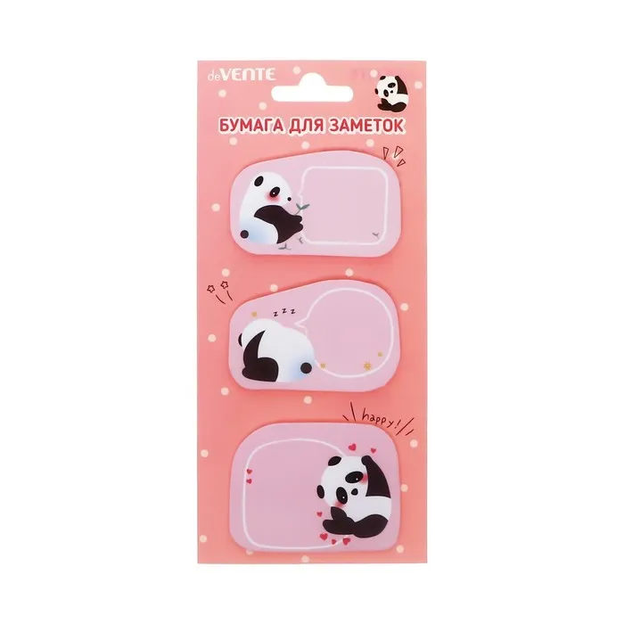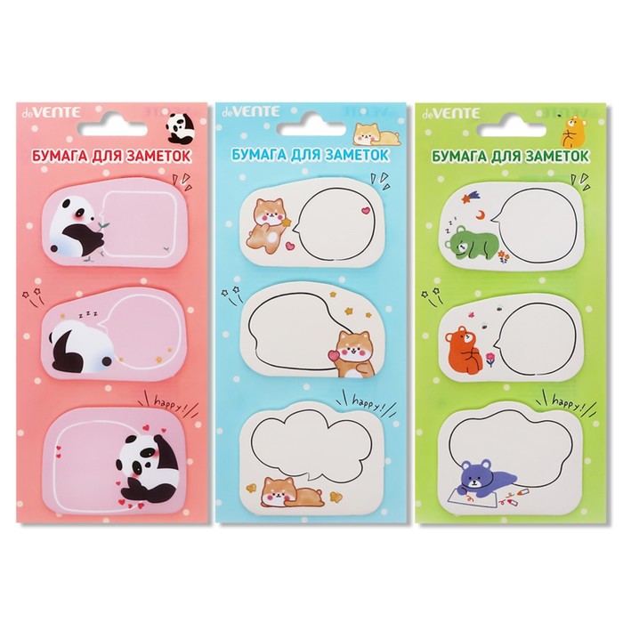 Набор клейкой бумаги для заметок "deVENTE. Shiba, Panda, Bear" 55x55 мм, 3x20 листов, офсет 80 г/м², печать 4+0, ассорти форм, 3 дизайна, в картонном блистере и пластиковом пакете с европодвесом