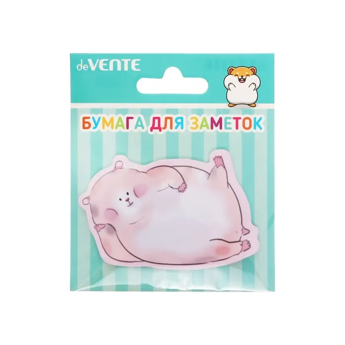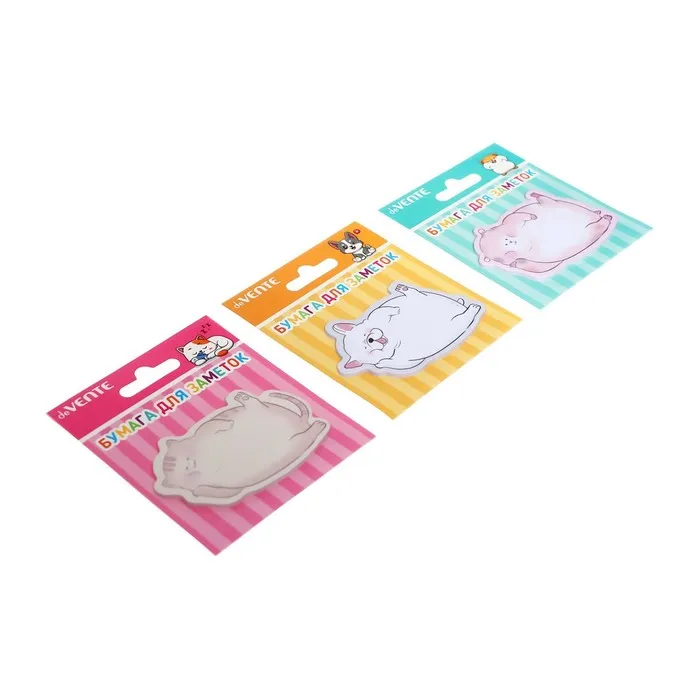 Клейкая бумага для заметок "deVENTE. Lying Animals" 70x50 мм, 20 листов, офсет 80 г/м², печать 4+0, ассорти форм и дизайнов, в картонном блистере и пластиковом пакете с европодвесом