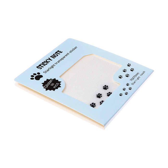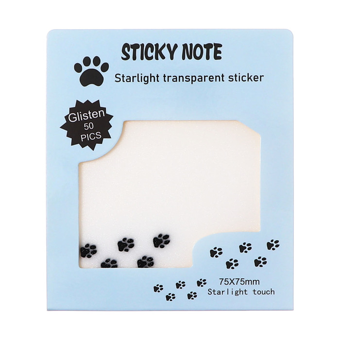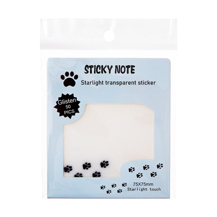 Блок с липким краем 75мм х 75мм 50л пластик прозрачные с блестками Лапки — Характеристики
