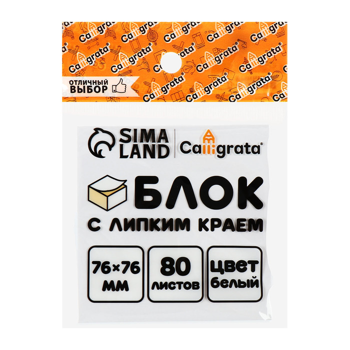 Блок с липким краем, 76×76 мм, 80 листов, белый — Характеристики