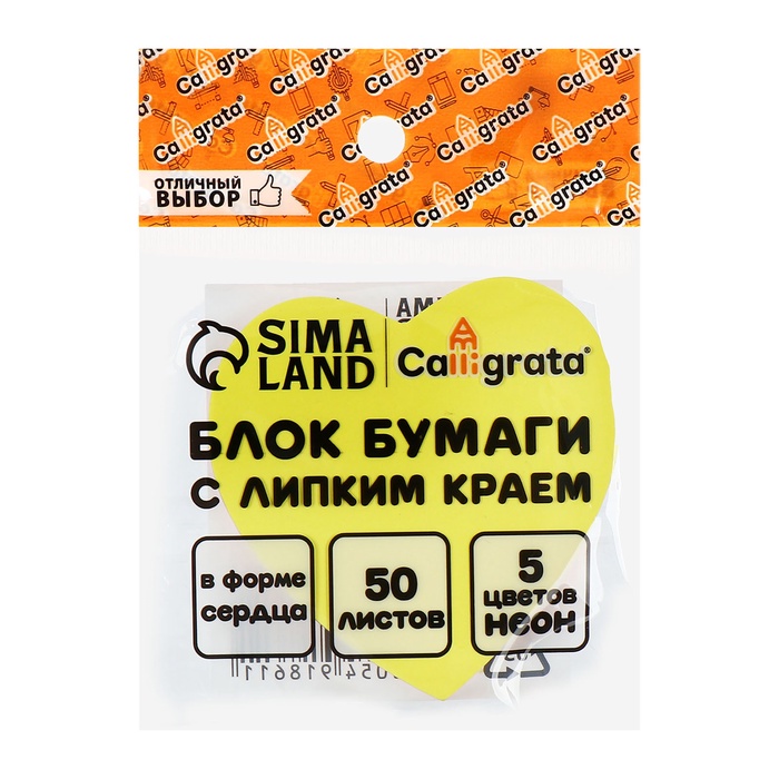 Блок с липким краем, «Сердце» 50 листов, флуоресцентные 5 цветов — Характеристики