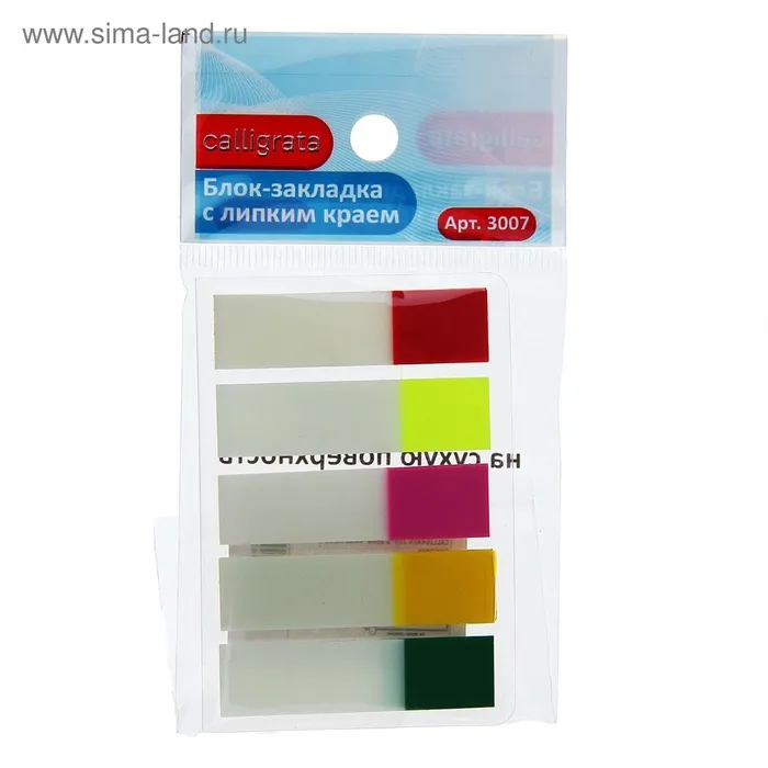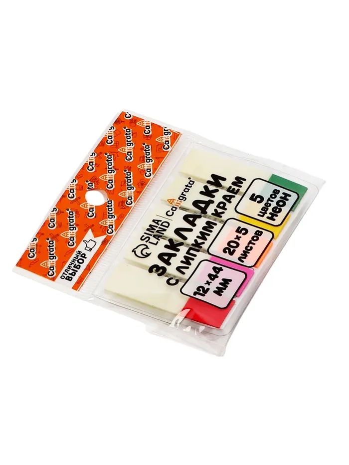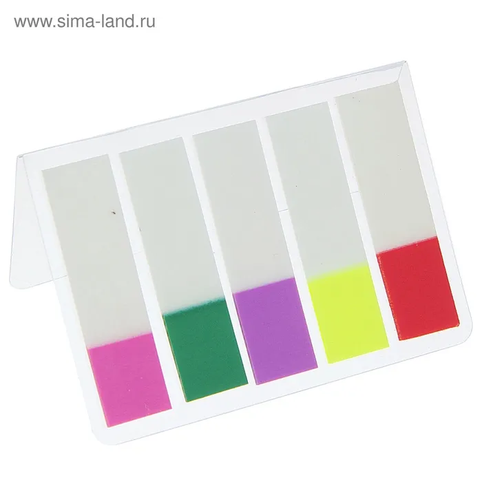 Блок - закладка с липким краем, 12×44 мм, 5 цветов по 20 листов, флуоресцентный, пластик, в блистере, МИКС — Характеристики