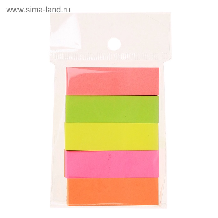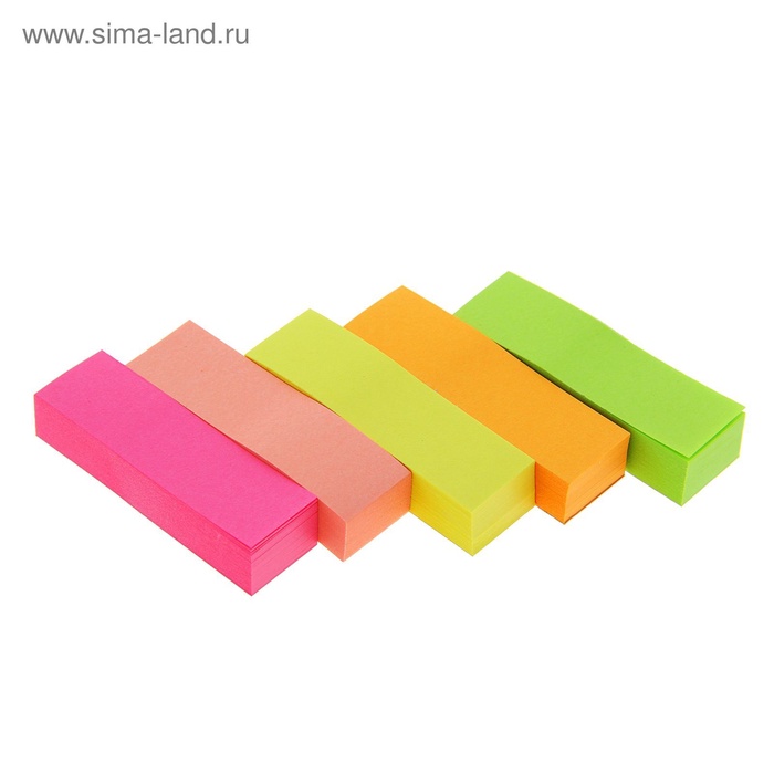 Блок - закладка с липким краем, 50×15 мм, 5 цветов по 100 листов, флуоресцентный, МИКС