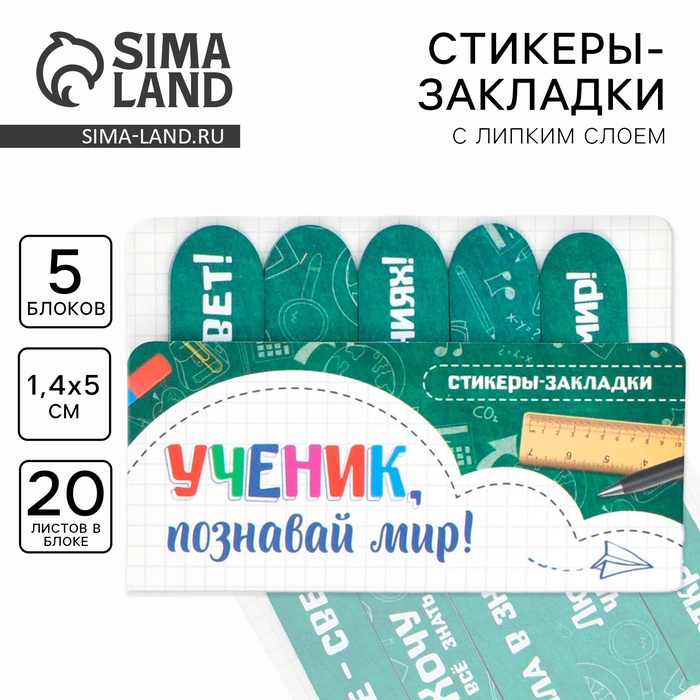 Стикеры закладки 5 шт., по 20 л. «Ученик, Познавай мир!»