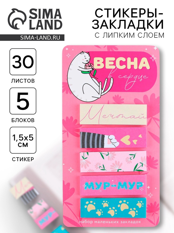 Стикеры-закладки, на подложке «Весна в сердце», 5 шт, 30 л/шт