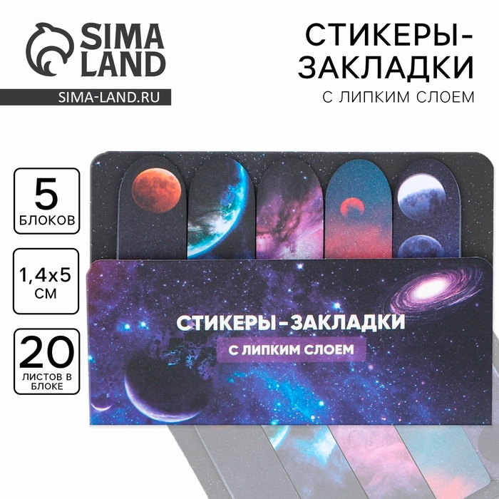 Стикеры закладки 5 шт., по 20 л. «Космос»