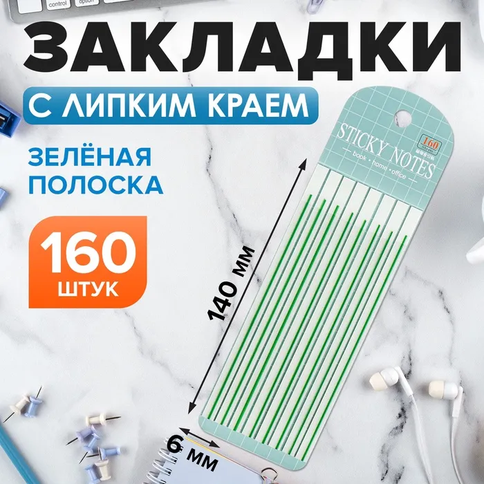 Блок-закладка с липким краем пластик 20л х 8 штук, зеленая полоска,140мм х 6мм CALLIGRATA 105326 — Характеристики