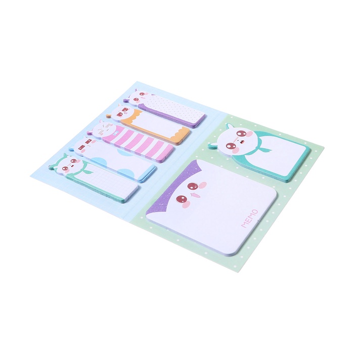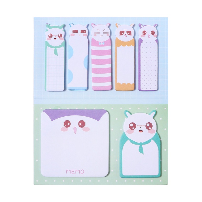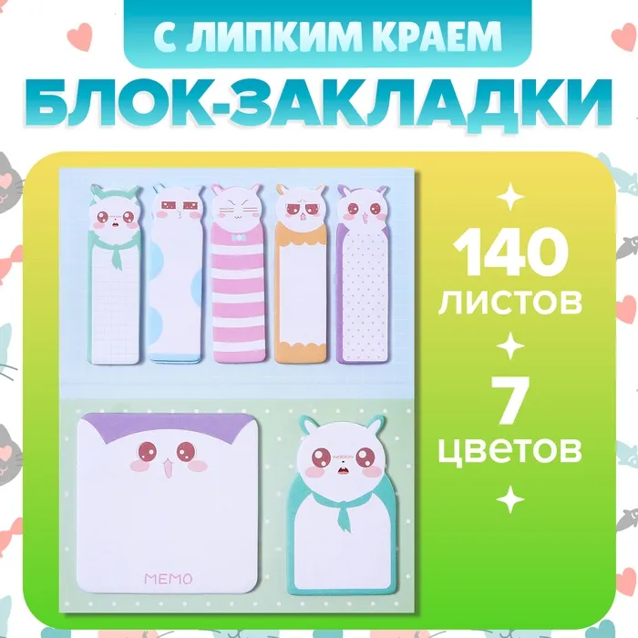 Блок-закладки с липким краем из бумаги, 20л*7 цветов, 57*17мм, 60*60 мм, 57*36мм, Котятки — Характеристики